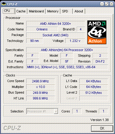 Результат разгона AMD Athlon 64 (Orleans)