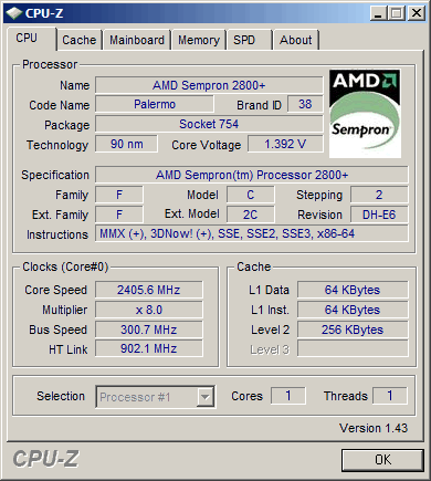 | Процессор (ядро) | AMD Sempron (Palermo) |