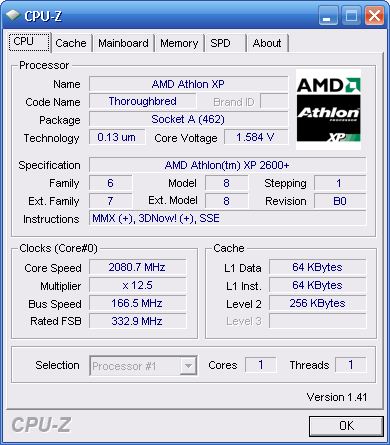 | Процессор (ядро) | AMD Athlon XP (Thoroughbred) |