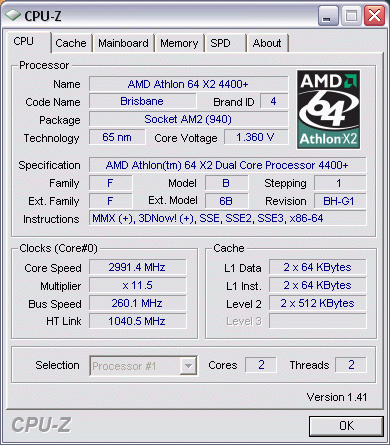 Результат разгона AMD Athlon 64 X2 (Brisbane)