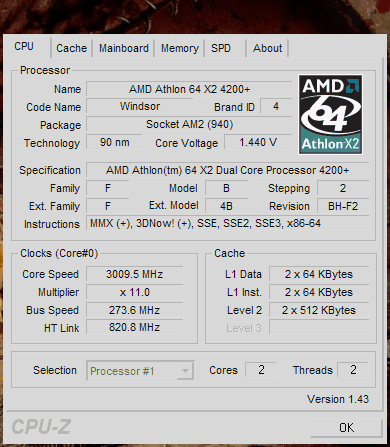 | Процессор (ядро) | AMD Athlon 64 X2 (Windsor) |