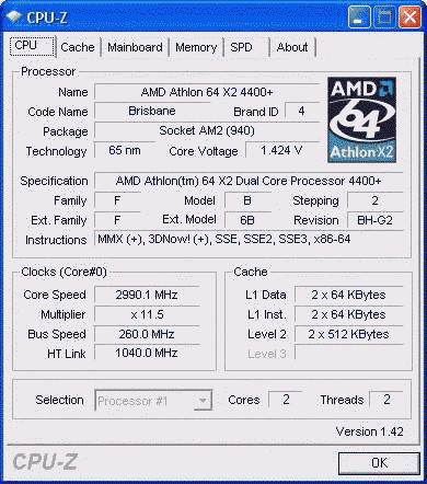 Результат разгона AMD Athlon 64 X2 (Brisbane)