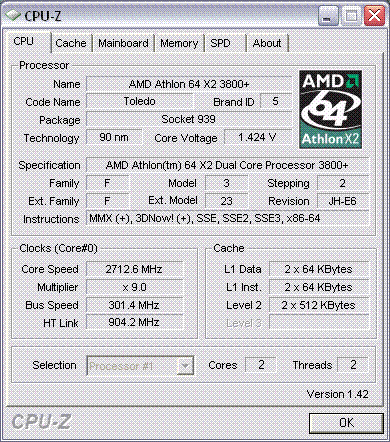 | Процессор (ядро) | AMD Athlon 64 X2 (Toledo) |
