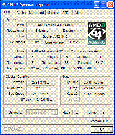 Результат разгона AMD Athlon X2 (Brisbane)