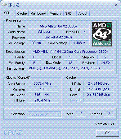 | Процессор (ядро) | AMD Athlon 64 X2 (Windsor) |