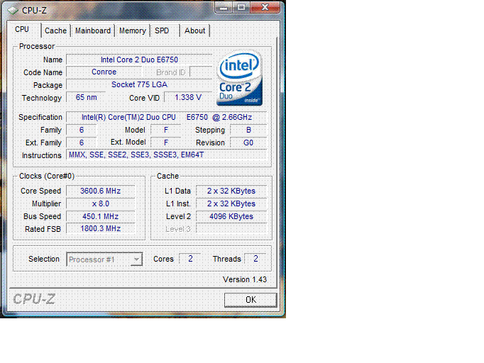 | Процессор (ядро) | Intel Core 2 Duo (Conroe) |