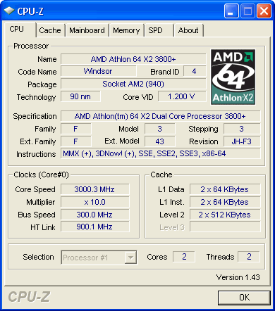 | Процессор (ядро) | AMD Athlon 64 X2 (Windsor) |