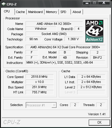 | Процессор (ядро) | AMD Athlon 64 X2 (Windsor) |