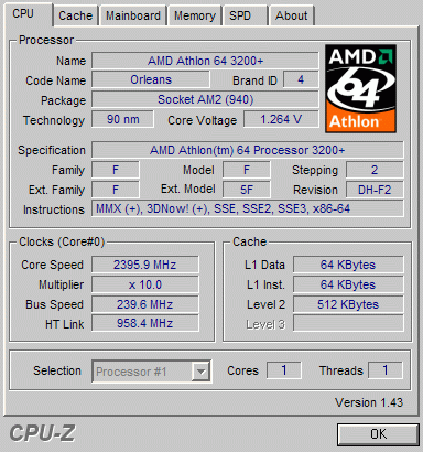 Результат разгона AMD Athlon 64 (Orleans)
