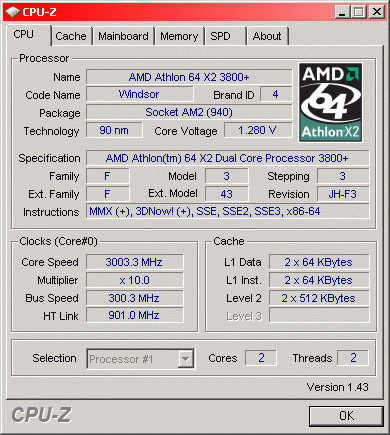 | Процессор (ядро) | AMD Athlon 64 X2 (Windsor) |