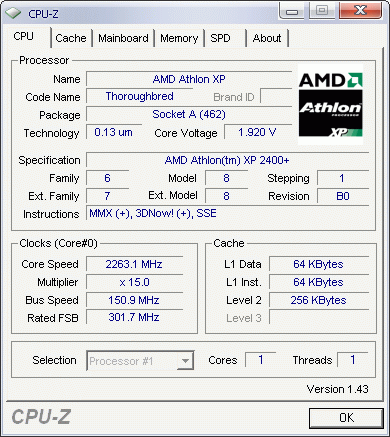 | Процессор (ядро) | AMD Athlon XP (Thoroughbred) |