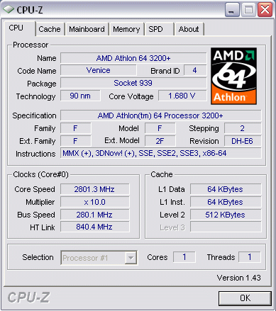 | Процессор (ядро) | AMD Athlon 64 (Venice) |