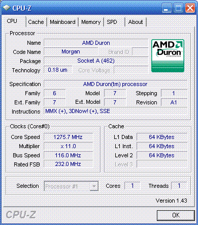 | Процессор (ядро) | AMD Duron (Morgan) |