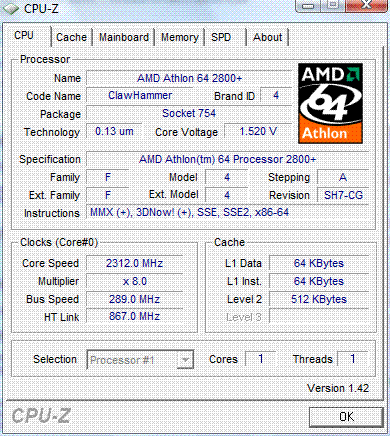 | Процессор (ядро) | AMD Athlon 64 (ClawHammer) |