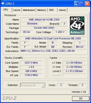 Результат разгона AMD Athlon 64 X2 (Brisbane)