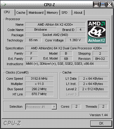 | Процессор (ядро) | AMD Athlon 64 X2 (Brisbane) |