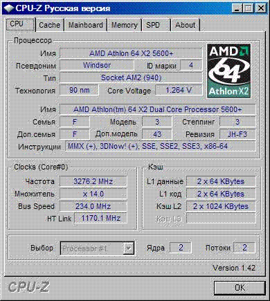 Результат разгона AMD Athlon 64 X2 (Windsor)