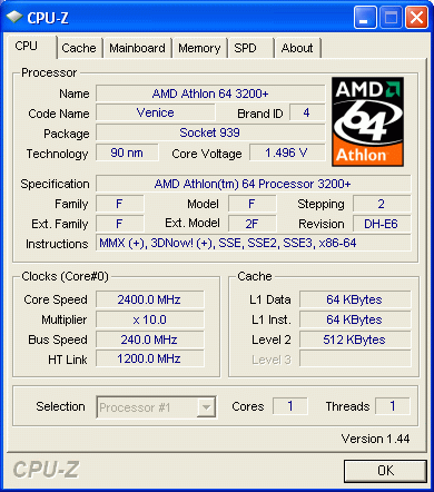 Результат разгона AMD Athlon 64 (Venice)