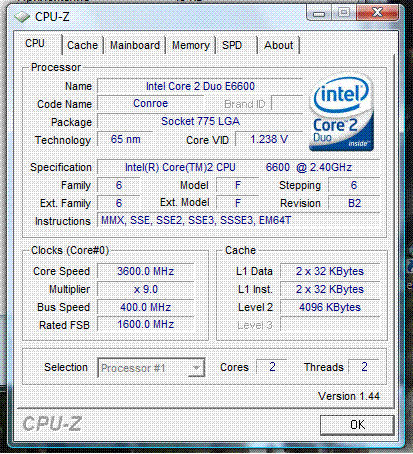Результат разгона Intel Core 2 Duo (Conroe)