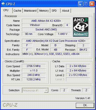 Результат разгона AMD Athlon 64 X2 (Windsor)