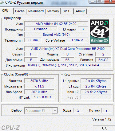 | Процессор (ядро) | AMD Athlon 64 X2 (Brisbane) |
