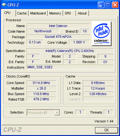 | Процессор (ядро) | Intel Celeron (Northwood-128) |