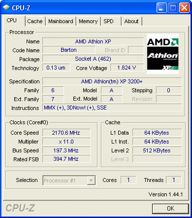 Результат разгона AMD Athlon XP (Barton)