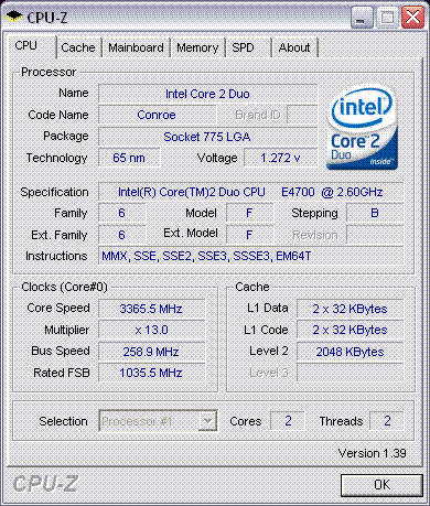 Результат разгона Intel Core 2 Duo (Conroe-2M)