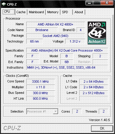 Результат разгона AMD Athlon 64 X2 (Brisbane)