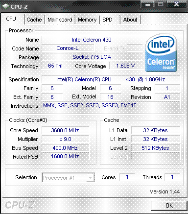 | Процессор (ядро) | Intel Celeron (Conroe-L) |