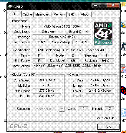 Результат разгона AMD Athlon 64 X2 (Brisbane)