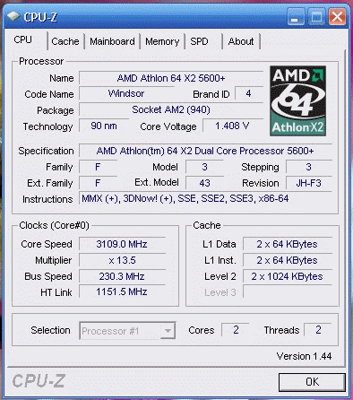 Результат разгона AMD Athlon 64 X2 (Windsor)