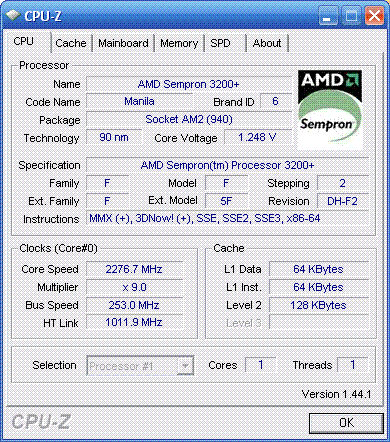 | Процессор (ядро) | AMD Sempron (Manila) |