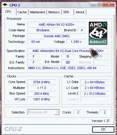 | Процессор (ядро) | AMD Athlon 64 X2 (Brisbane) |
