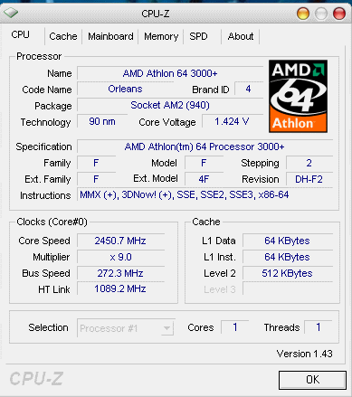| Процессор (ядро) | AMD Athlon 64 (Orleans) |