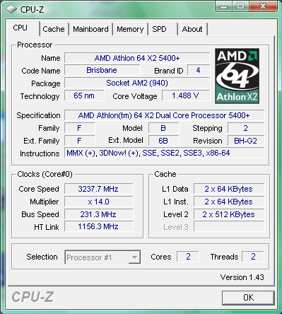 Результат разгона AMD Athlon 64 X2 (Brisbane)