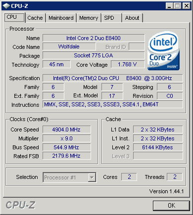 Результат разгона Intel Core 2 Duo (Wolfdale)