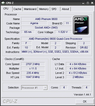 | Процессор (ядро) | AMD Phenom X4 (Agena) |