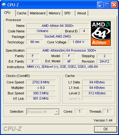 | Процессор (ядро) | AMD Athlon 64 (Orleans) |