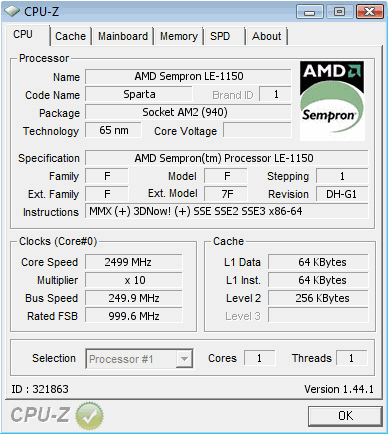 Результат разгона AMD Sempron (Sparta)