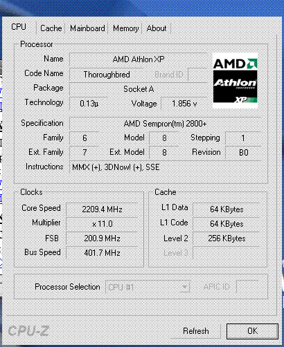 Результат разгона AMD Sempron (Thoroughbred)