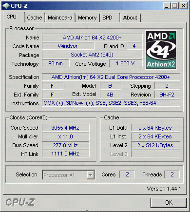 Результат разгона AMD Athlon 64 X2 (Windsor)