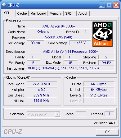 Результат разгона AMD Athlon 64 (Orleans)