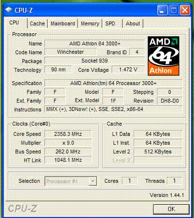 | Процессор (ядро) | AMD Athlon 64 (Winchester) |