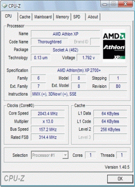 | Процессор (ядро) | AMD Athlon XP (Thoroughbred) |