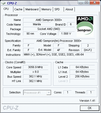| Процессор (ядро) | AMD Sempron (Manila) |