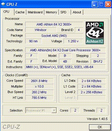 | Процессор (ядро) | AMD Athlon 64 X2 (Windsor) |