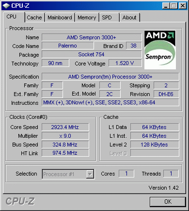 | Процессор (ядро) | AMD Sempron (Palermo) |