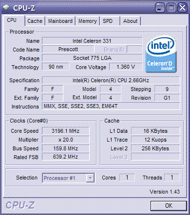 | Процессор (ядро) | Intel Celeron D (Prescott-256) |