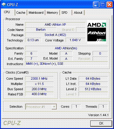 Результат разгона AMD Athlon XP (Barton)
